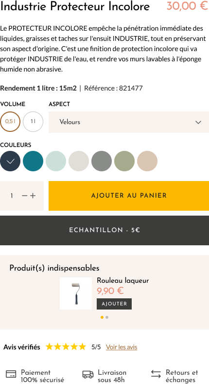 Mélangez la peinture avant utilisation. Protégez à l'aide d'un ruban de masquage les zones à ne pas peindre. Commencez par dégager les angles à l'aide d'un pinceau à réchampir. A l'aide d'un bac à peindre, répartissez la peinture sur le rouleau. Appliquez la peinture en croisant les passes, en travaillant par surface de 1 rn2 maximum. Terminez en lissant la peinture de haut en bas sans recharger le rouleau pour bien tendre la peinture. Évitez de revenir sur les zones déjà peintes en cours de séchage. Pour une application murale, nous vous conseillons d'utiliser un rouleau mur et plafond. Pour une application sur un meuble, préférez utiliser un rouleau laqueur car la peinture se tendra plus facilement. Sur boiseries (lambris, poutres, portes...), vous pouvez appliquer le produit avec un spalter dans le sens du veinage du bois. Retirez les rubans de masquage immédiatement après la première couche. Laissez sécher au minimum 6h avant application de la seconde couche. CTA telechargement fiche mise en oeuvre = ICONE